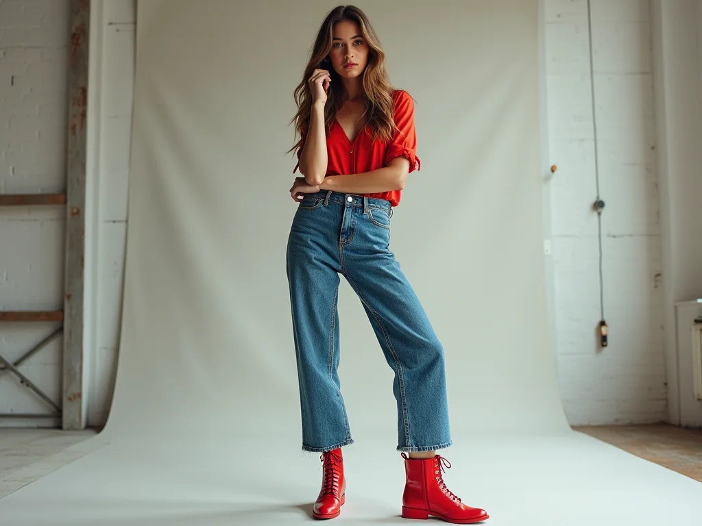 Sabe, não é só o vermelho que importa. O tipo de calça jeans também faz toda a diferença. Uma calça skinny mais justa combina super bem com scarpins ou sandálias de salto alto vermelhas. Já para um jeans mais soltinho, como o mom jeans ou até um boyfriend, um tênis vermelho ou uma bota de cano curto podem ser a pedida certa. A ideia é criar um equilíbrio visual entre a peça de cima e a de baixo.