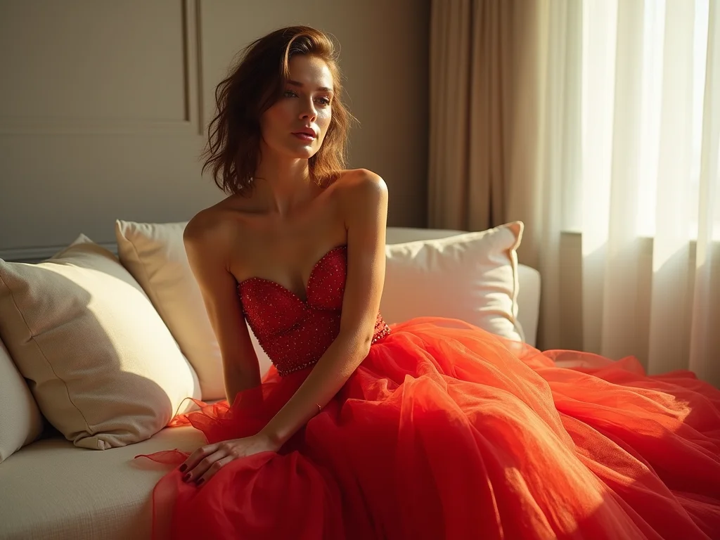 Os tecidos clássicos como cetim, seda e renda continuam sendo escolhas seguras e elegantes, adaptando-se a diversas silhuetas e ocasiões. Para um visual mais estruturado e com caimento impecável, a zibeline é a pedida certa, ideal para quem busca cortes arquitetônicos e um toque de requinte.